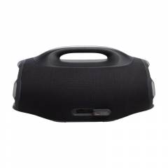 Về mặt chất liệu Boombox 4 vẫn sử dụng ê-căng bằng vải dệt chống thấm. Phần quai xách được thay bằng chất liệu nhựa kết hợp với các viền cao su dày dặn xung quanh loa mang đến độ bền bỉ và chống chịu va đập tốt hơn.