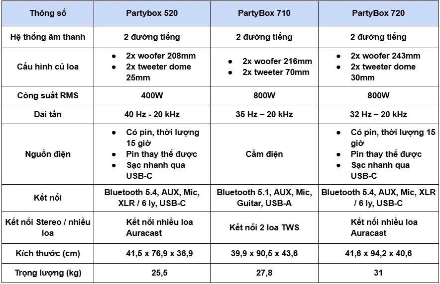 7. So sánh loa JBL PartyBox 720 vs PartyBox 710 và PartyBox 520