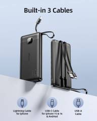 - Tích hợp 3 dây sạc đa năng: Lightning cho iPhone, USB-C cho iPhone 15/16 & Android, USB-A tiện dụng – không cần mang theo cáp rời.