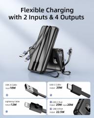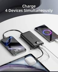- Hỗ trợ sạc linh hoạt với 2 cổng vào & 4 cổng ra: Sạc cùng lúc tới 4 thiết bị với công suất mạnh mẽ (USB-C 20W, USB-A 22.5W, Lightning 12W).